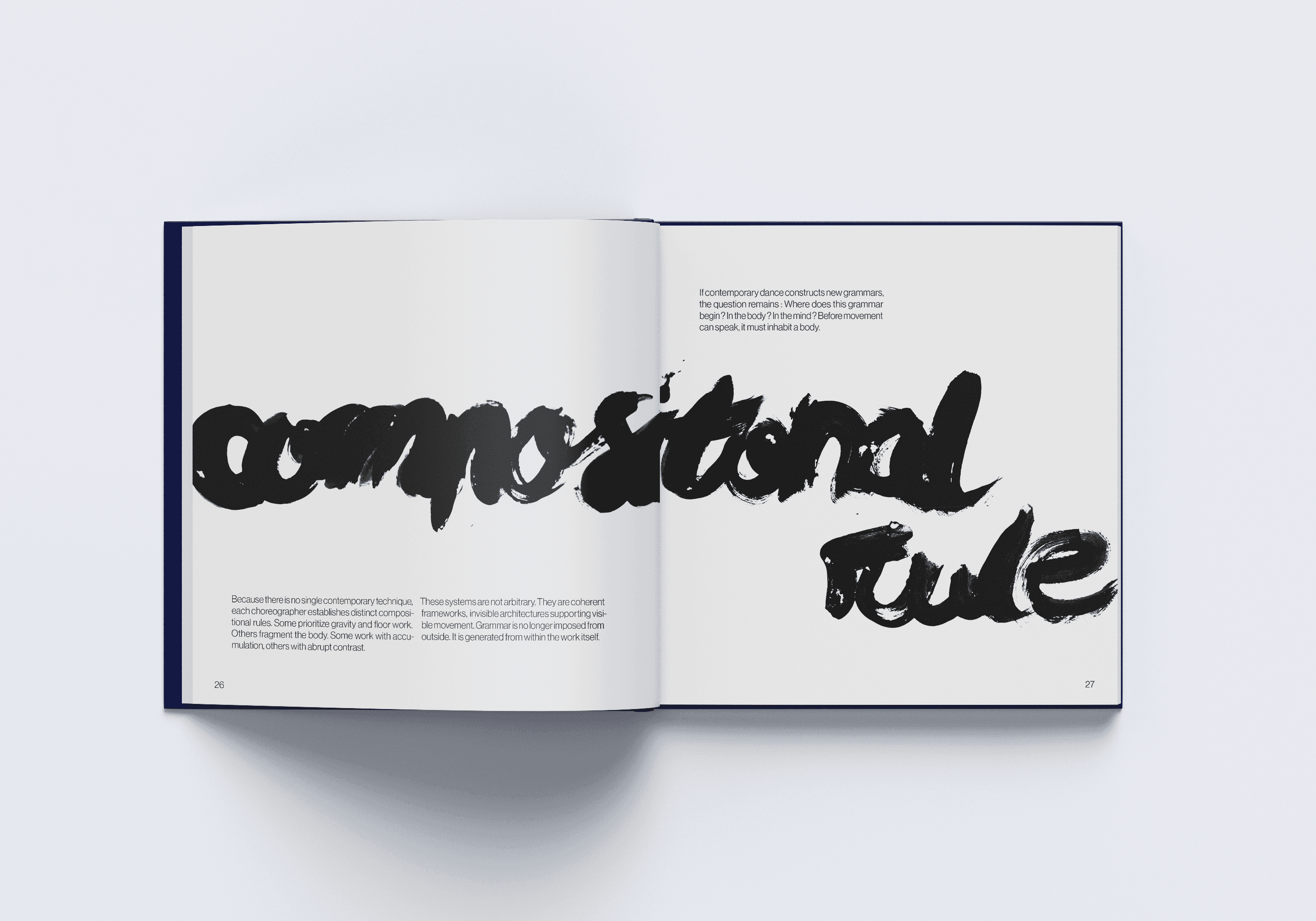 J’ai donc commencé le projet Grammar of Movement, un livre éditorial et conceptuel consacré à la danse contemporaine et à la manière dont le mouvement peut être compris comme une forme de langage non verbal.